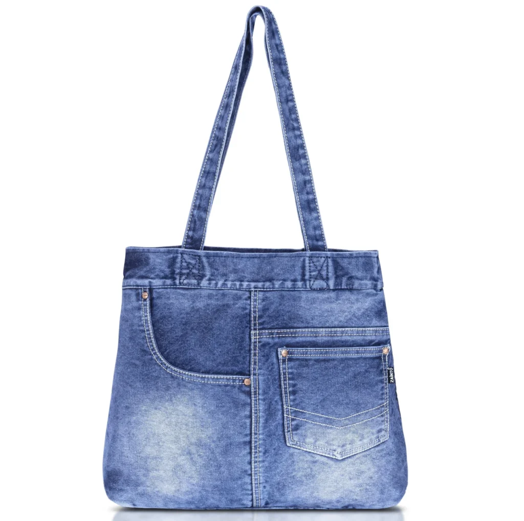 This denim tote bag combines durability, practicality, and trendy design — making it a perfect addition to any fashion collection.